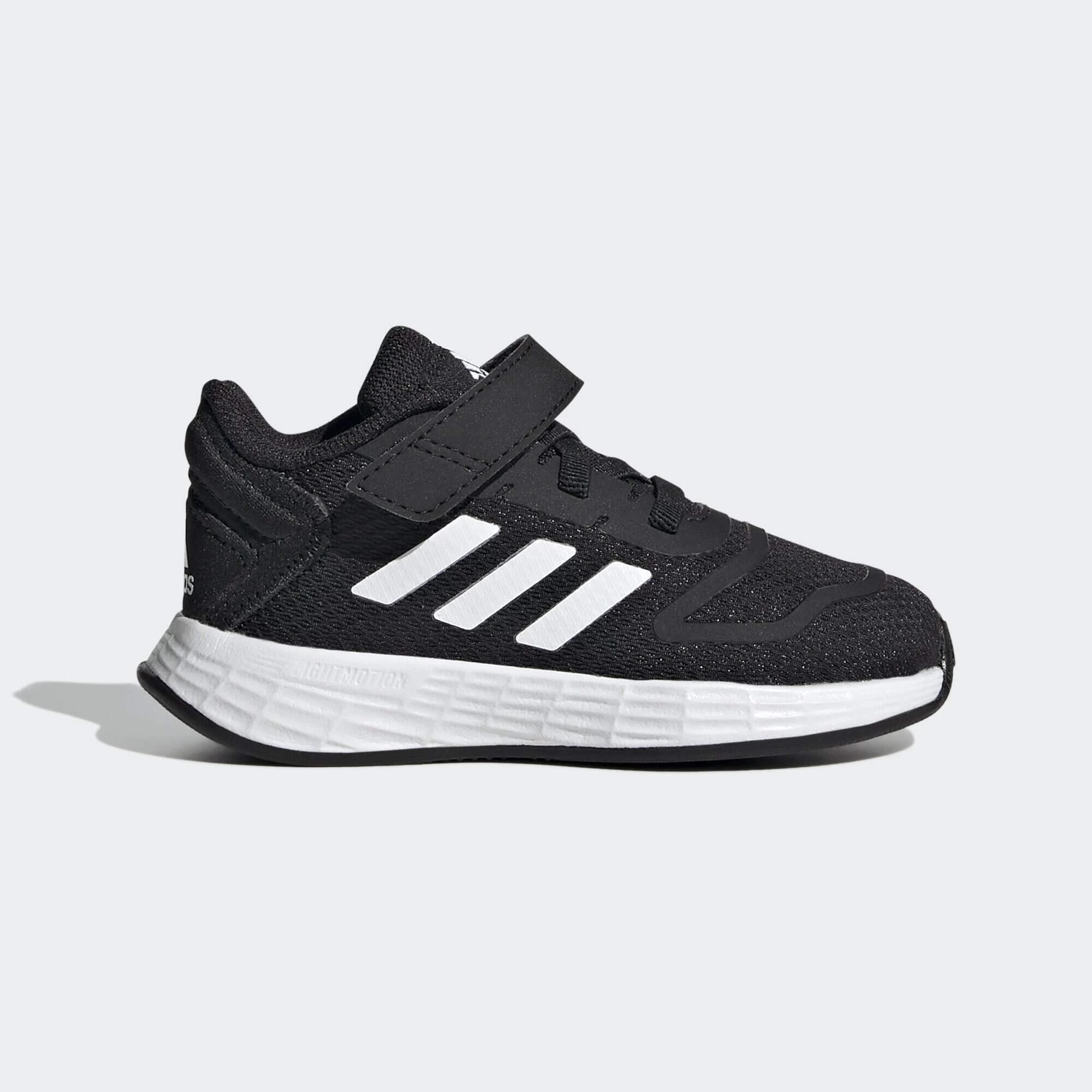 Caution: May cause baby blur. The LIGHTMOTION midsole in these infants’ adidas running shoes adds a hit of comfy cushioning as your little one sprints across the kitchen. The elastic laces plus hook-and-loop strap keep the shoes snug on sharp turns with the family pet in hot pursuit.Made with a series of recycled materials, and at least 50% recycled content, this product represents just one of adidas’ solutions to help end plastic waste.