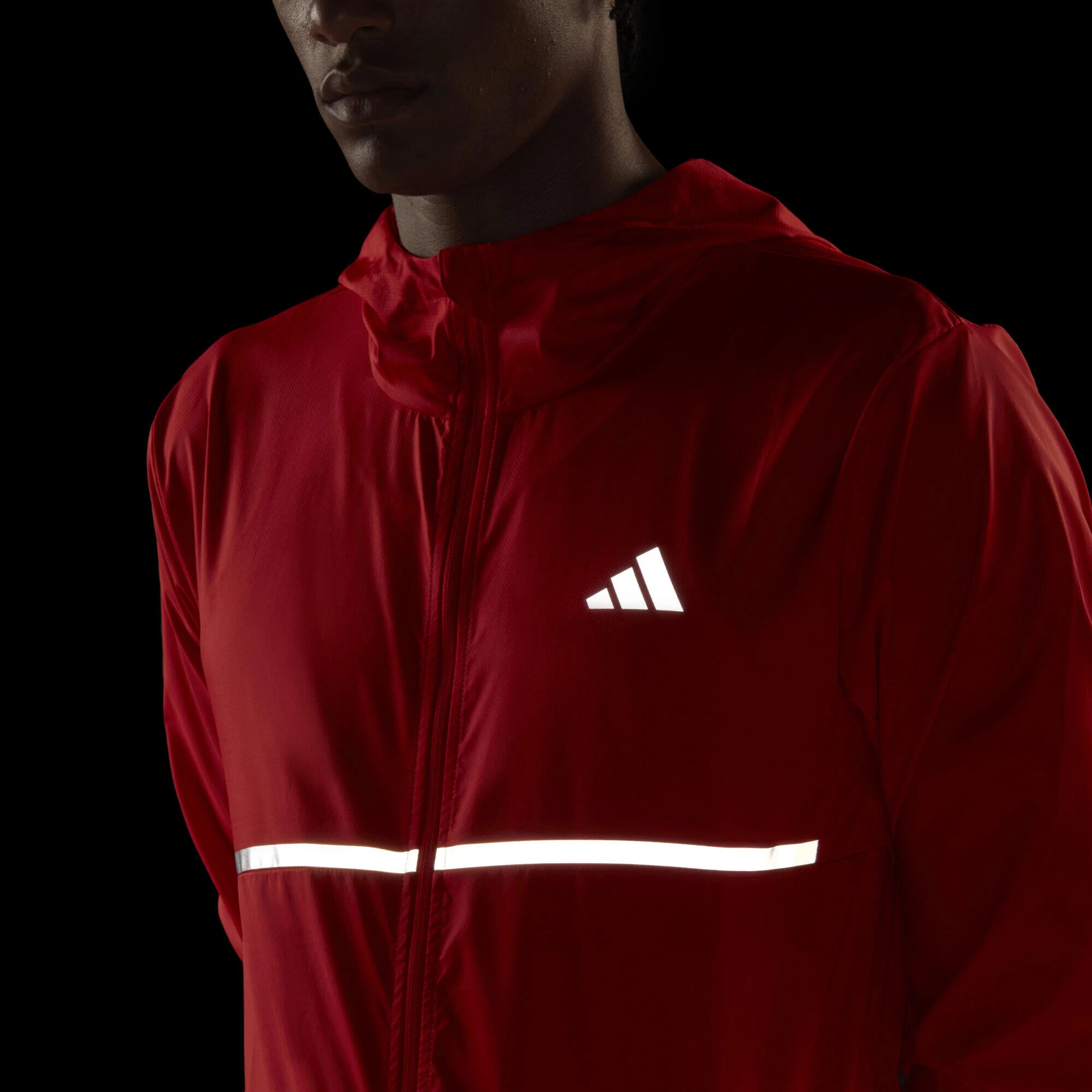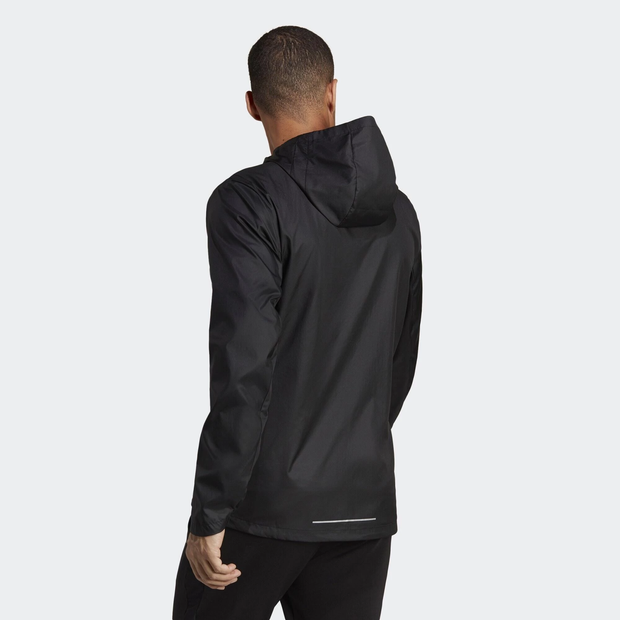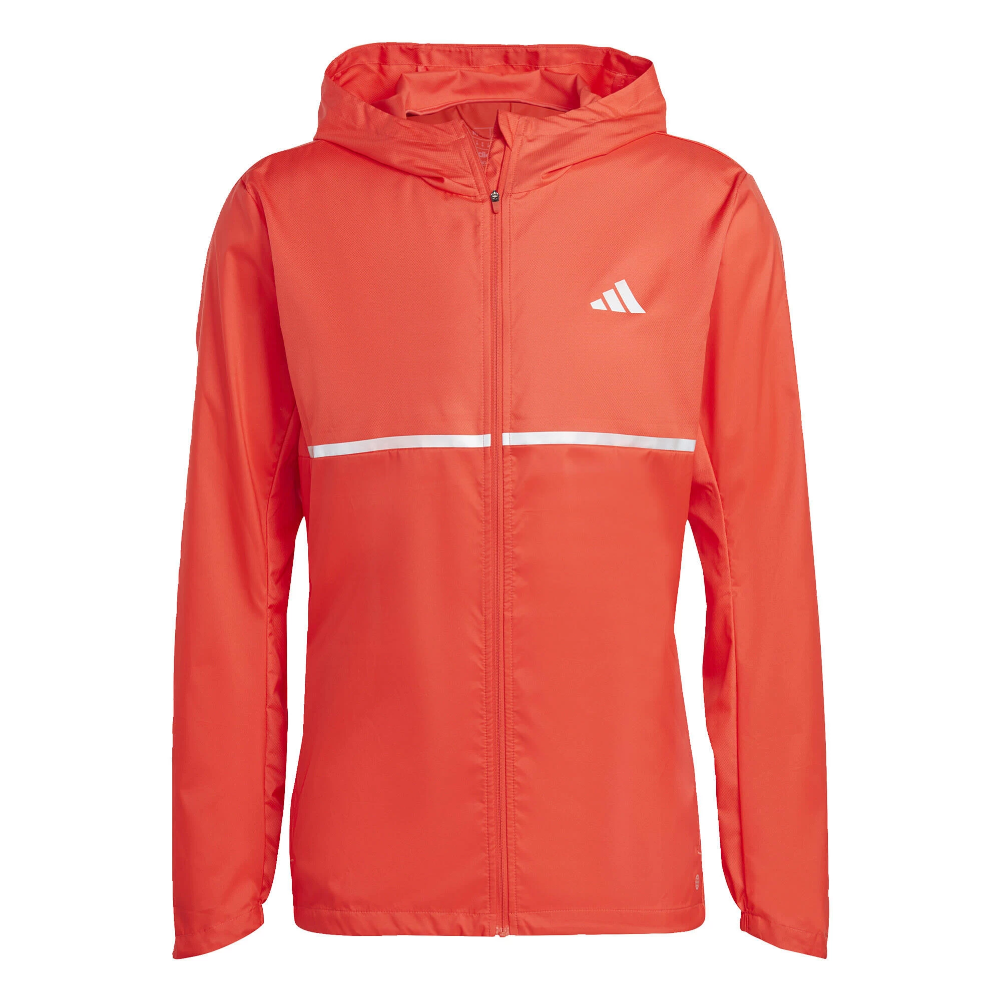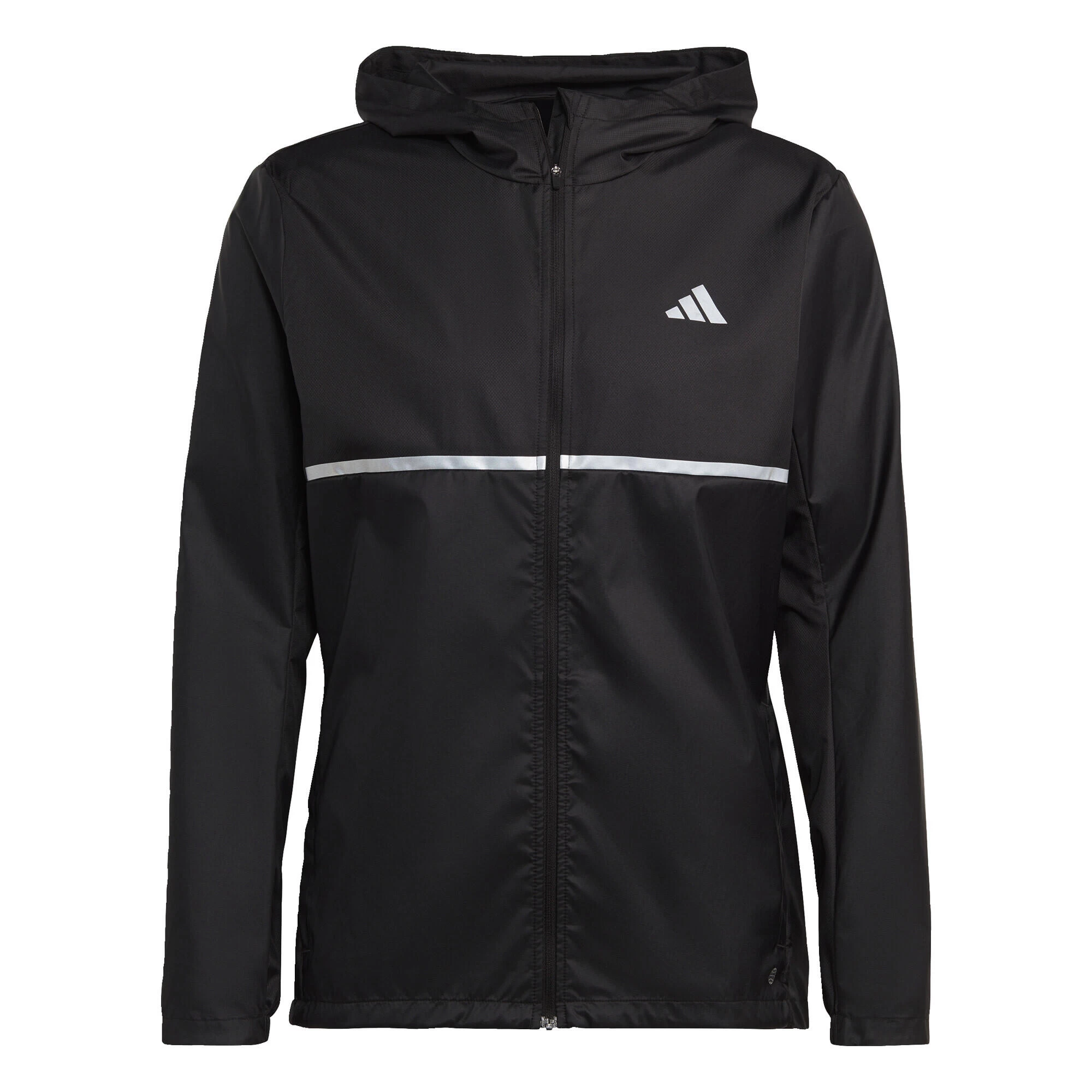 Zip into this adidas running jacket and log those cool morning miles. Lightweight, breathable dobby fabric is comfortable for everyday wear. Zip pockets keep your essentials close at hand. When there’s a chill in the air, this hooded jacket will keep you going.Made with 100% recycled materials, this product represents just one of adidas’ solutions to help end plastic waste.