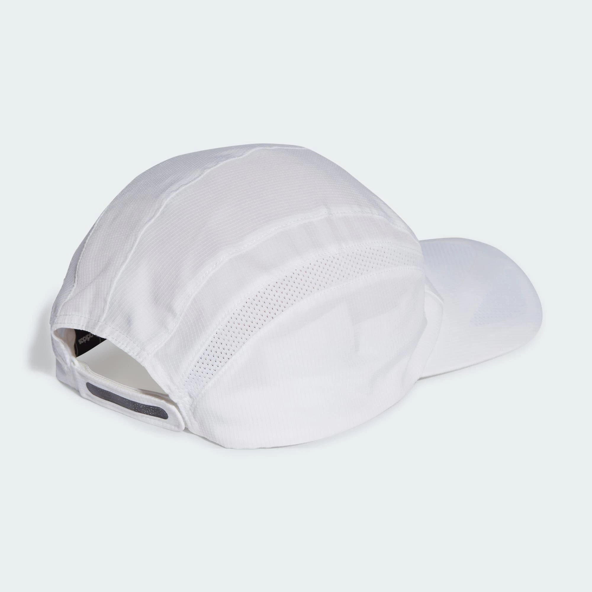 Race the clock in this adidas HEAT.RDY running cap. Its lightweight build won’t bog you down, and laser-cut ventilation makes sure that perspiration won’t either. Adjust the back strap to get the perfect fit. You can flip up the brim or wear it down to block the sun rays.Made with a series of recycled materials, and at least 70% recycled content, this product represents just one of adidas’ solutions to help end plastic waste.