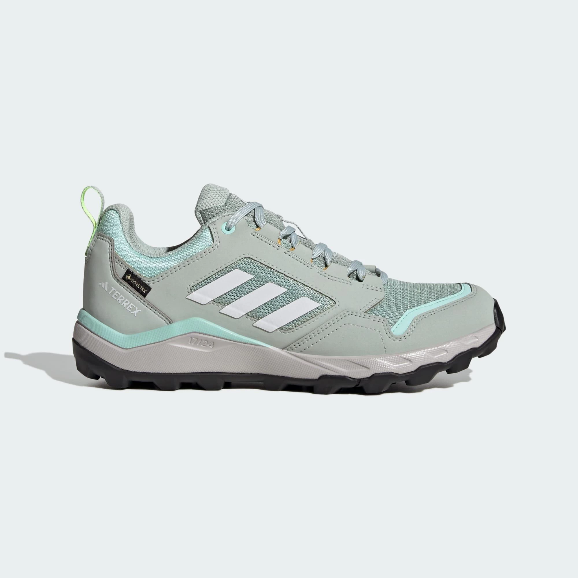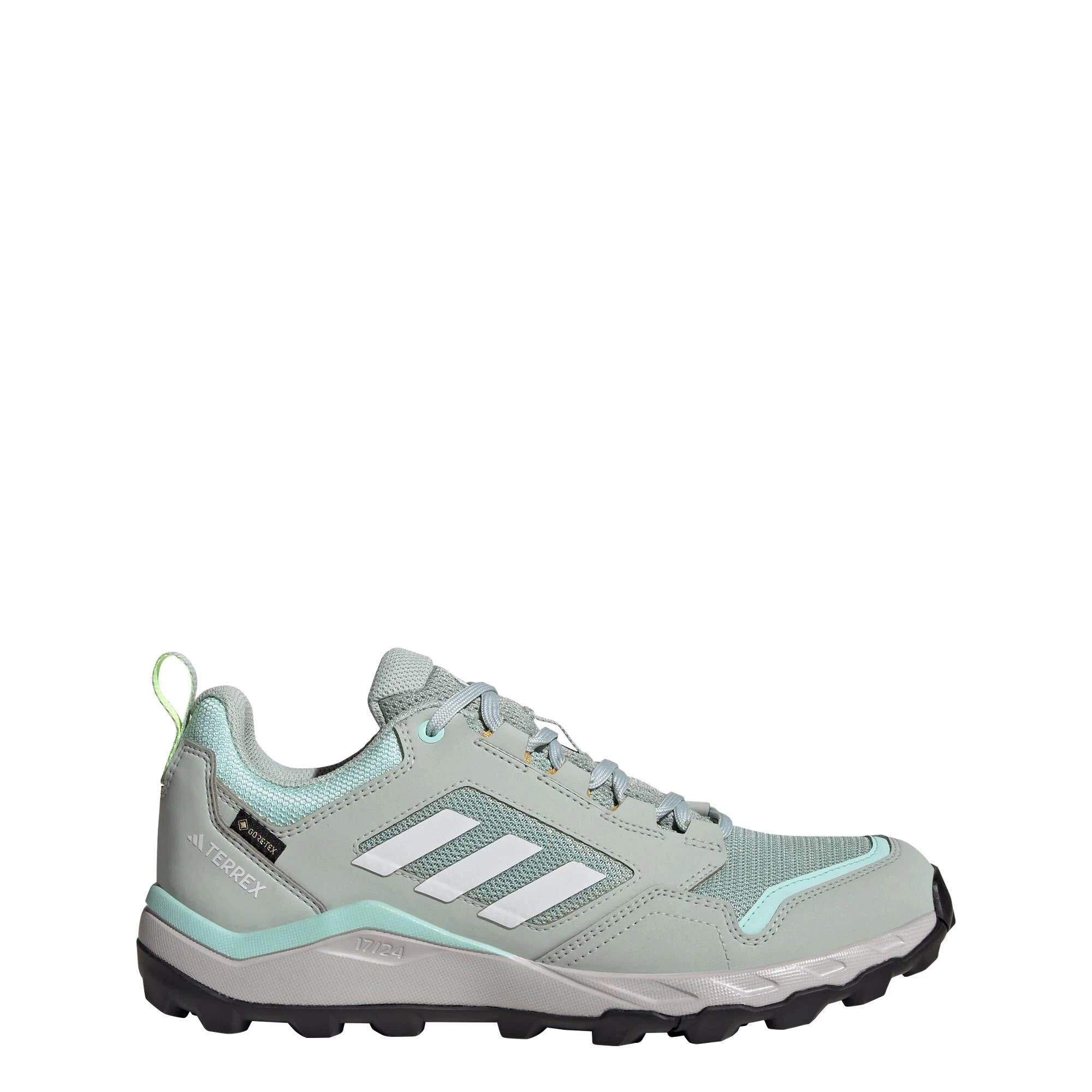 Extend your range beyond the city streets and hit the trails with confidence in these adidas trail running shoes. Lightweight cushioning gives you that familiar running-shoe comfort across all terrain, paved or trail. A waterproof, breathable GORE-TEX membrane lets you explore wet, muddy trails and finish your run with dry feet. From hopping rocks to crossing creeks, the open-mesh upper offers breathability and the Traxion rubber outsole provides grip so you can navigate slick surfaces with ease.Made with a series of recycled materials, this upper features at least 50% recycled content. This product represents just one of adidas’ solutions to help end plastic waste.