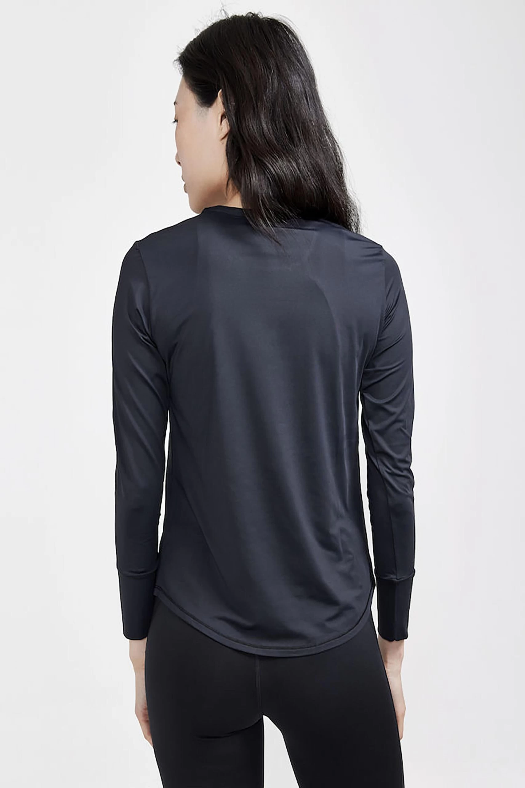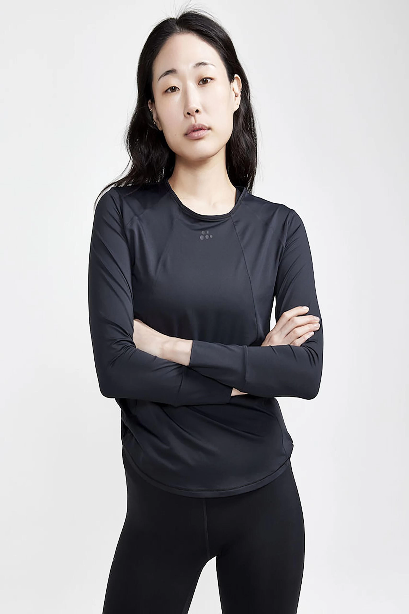The long-sleeve tee is made of a stretchy and quick-drying jersey fabric from recycled polyamide and polyester,