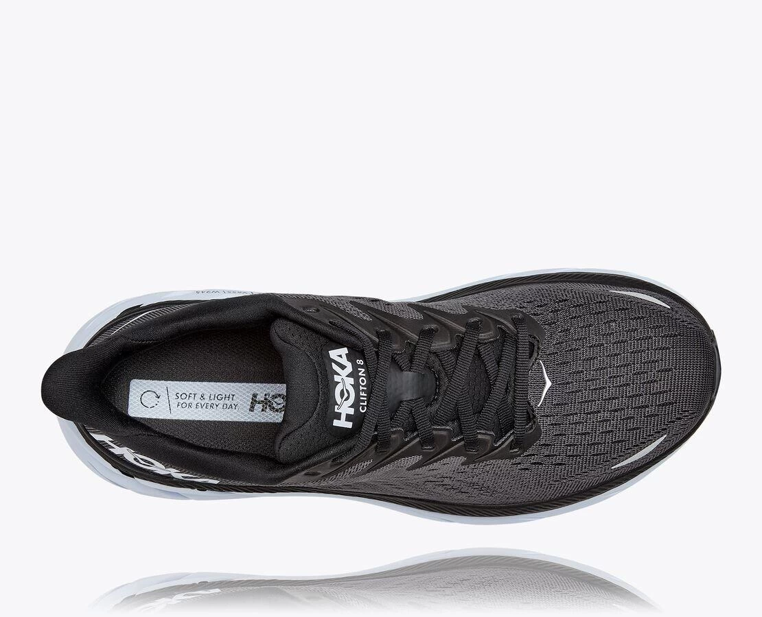 Hoka Womens Clifton 8 WIDE Running Shoes Black 1121375-BWHT