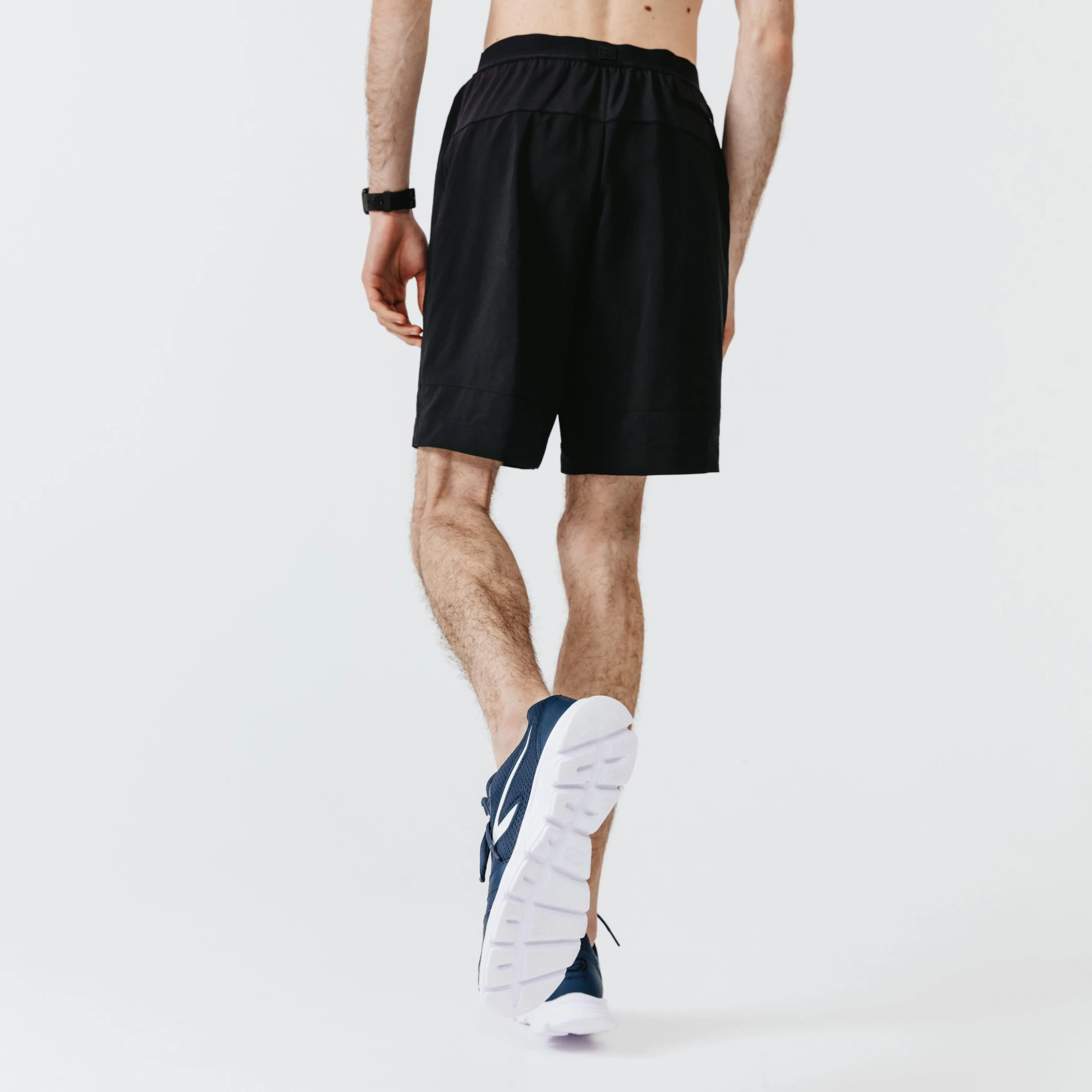 Our team designed these men’s running shorts lined with a technical boxer to reduce the risk of irritation at the crotch when running.We lengthened the boxer so that it does not ride up at the crotch of the shorts. It is made of a breathable fabric. The zipped pocket is for carrying your smartphone and keys during your runs.