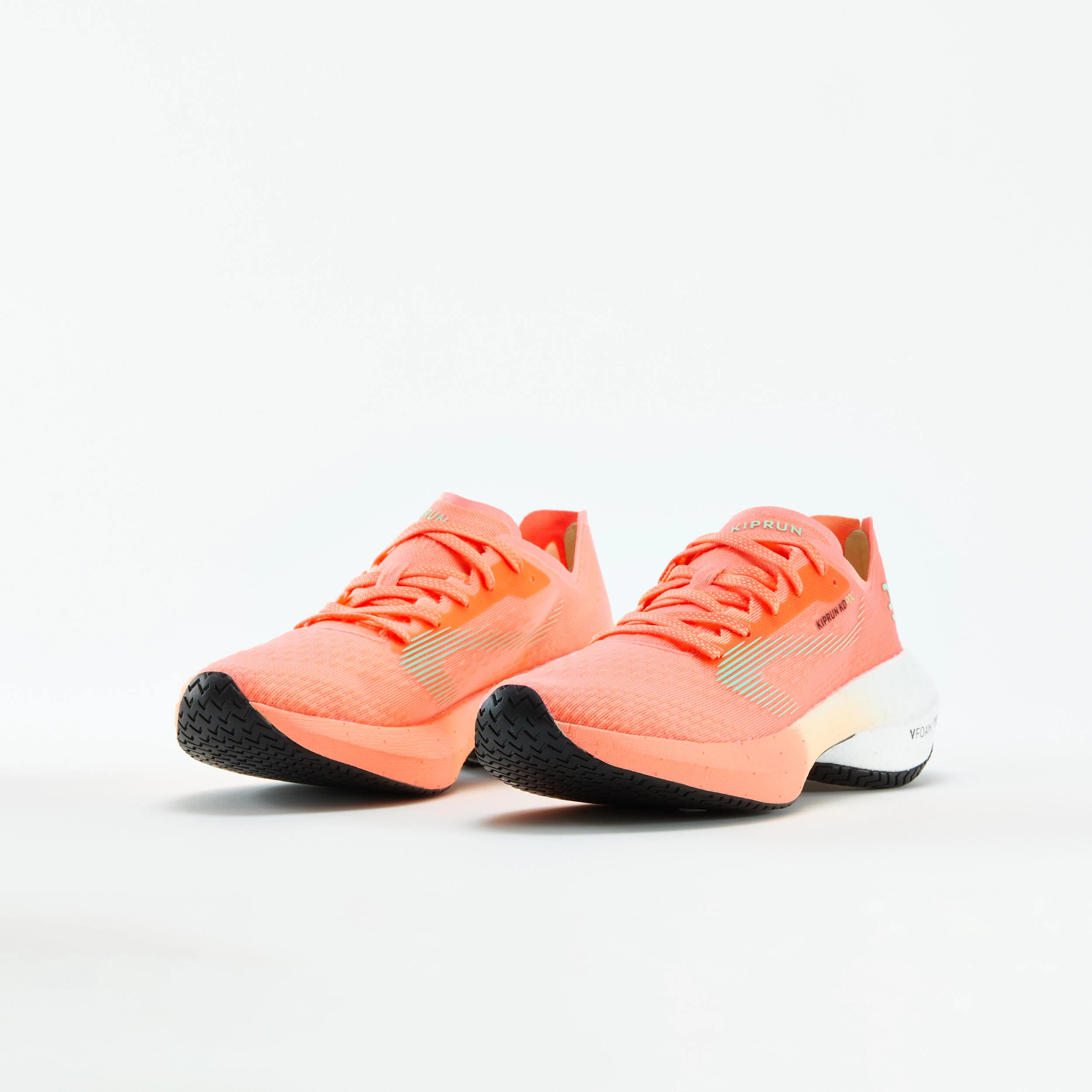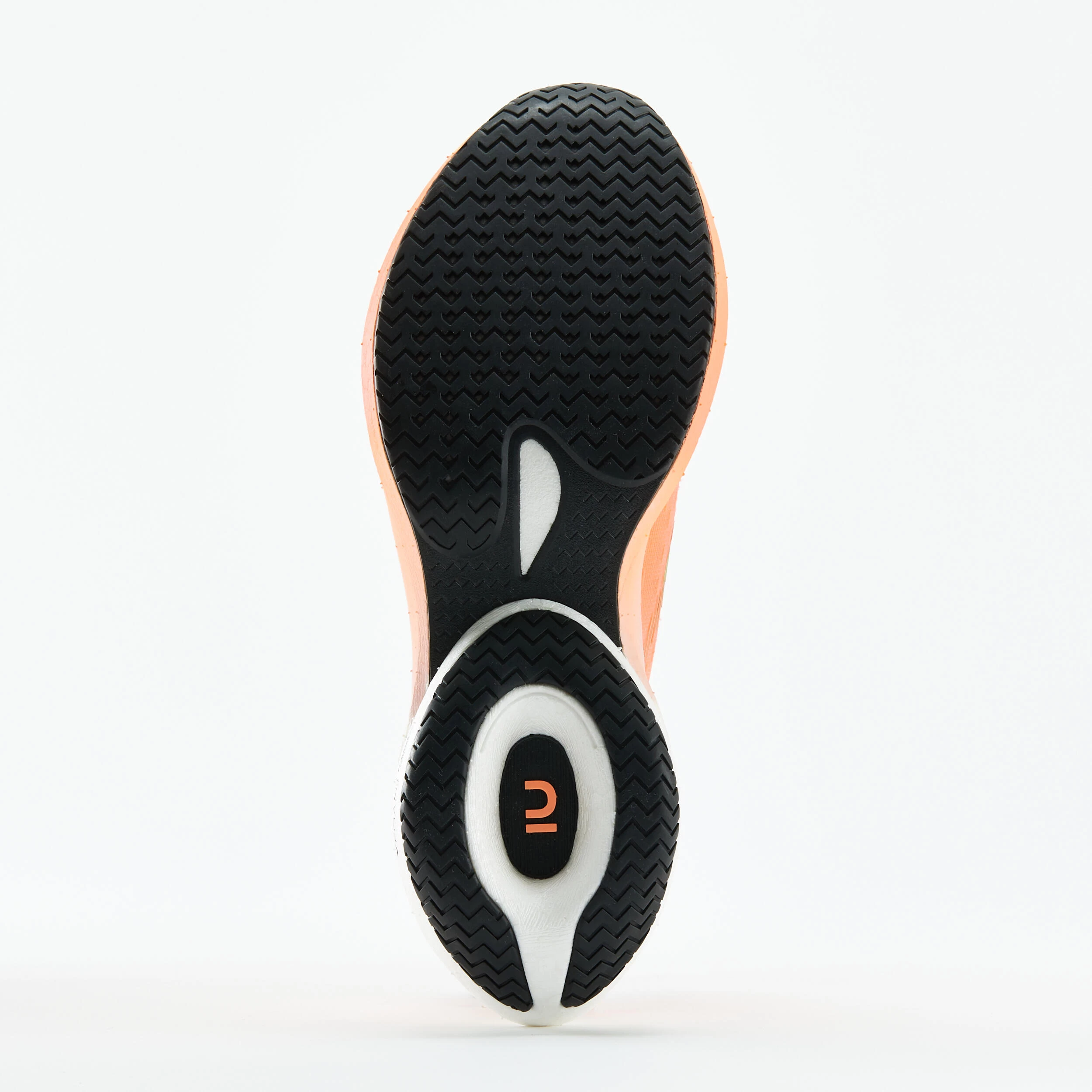 Our teams developed these dynamic, shock-absorbing and lightweight women’s running shoes for runners seeking propulsion with every stride (from 10 to 42km)With their low weight, Pebax® foam and geometrical shape, the KIPRUN KD900 offer ultra-reactive cushioning and are perfect for both training (interval/long sessions) and competitions.