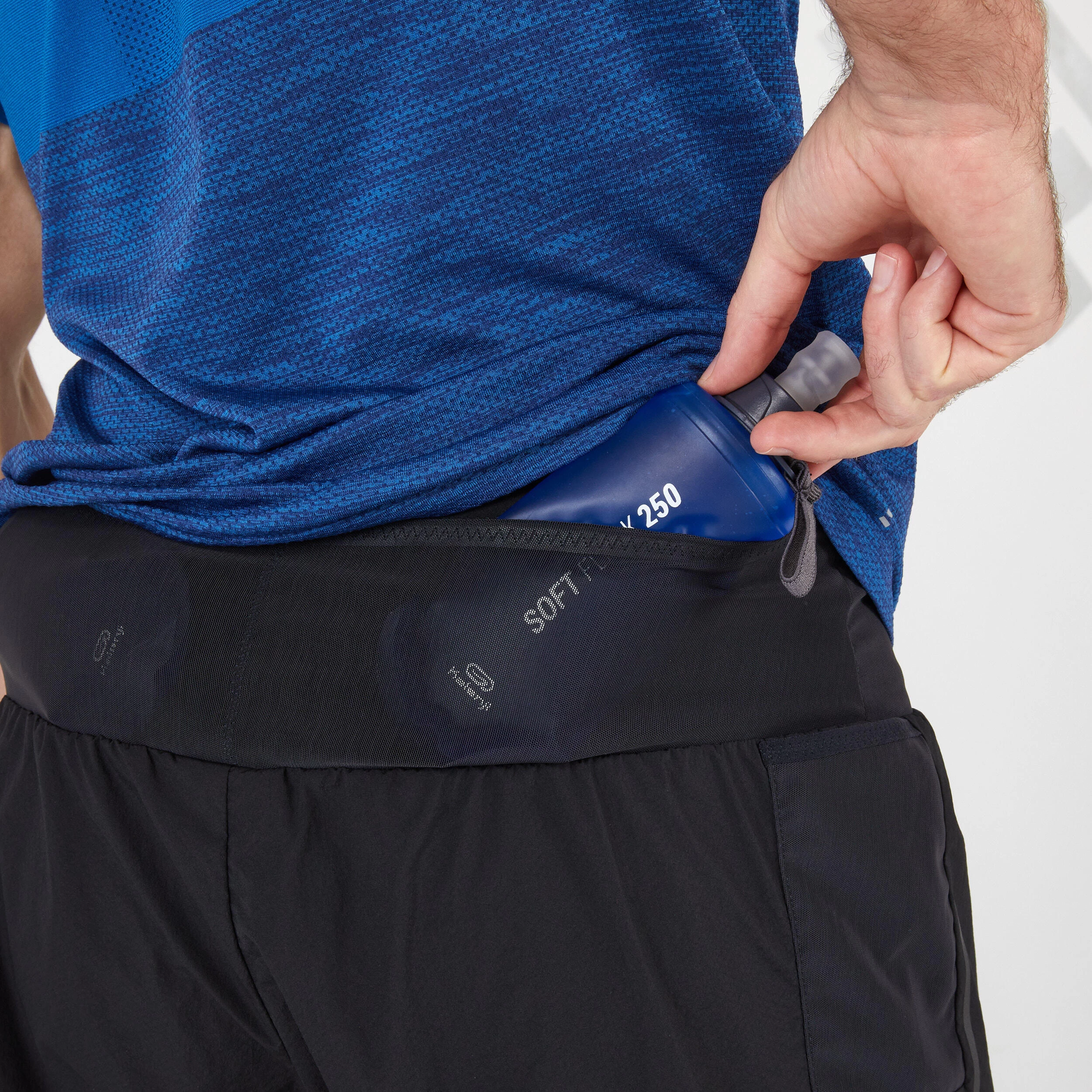 We developed these running shorts with 7 built-in pockets to reduce chafing while you run.7 pockets for carrying 2 bottles (250 mL), gels and your smartphone, giving you total independence when running. A longline cut that reduces irritations.