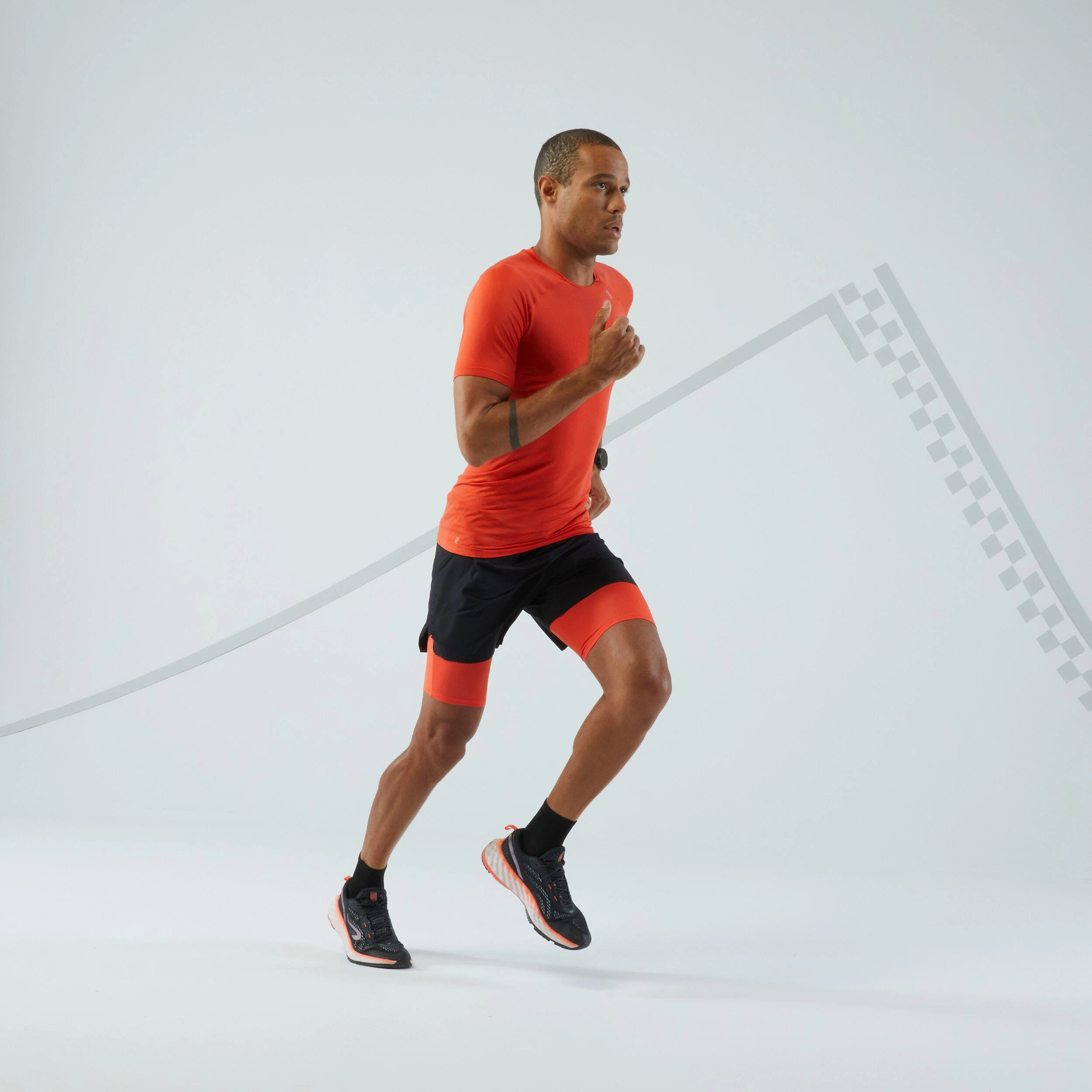 Our design teams developed these lightweight men’s running tight shorts for running in hot weather!These running shorts with built-in tight shorts reduce rubbing of fabric between the thighs. Their lightweight material has excellent perspiration wicking properties. Back zip pocket.