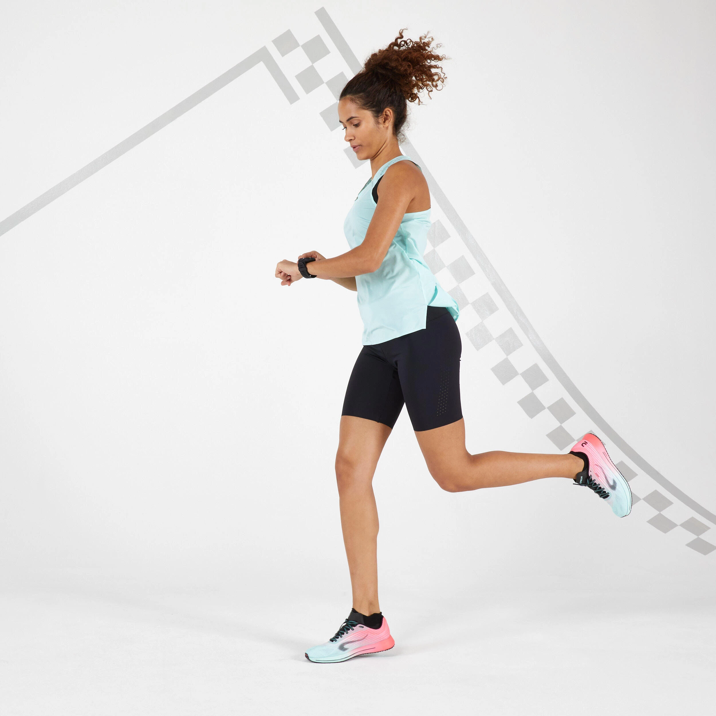 Our design team developed these women’s running tight shorts for unbeatable comfort.5 pockets for carrying 2 bottles (250ml), 6 gels and your phone. The fabric and cut provide excellent support and reduce chafing. Ideal for long runs!