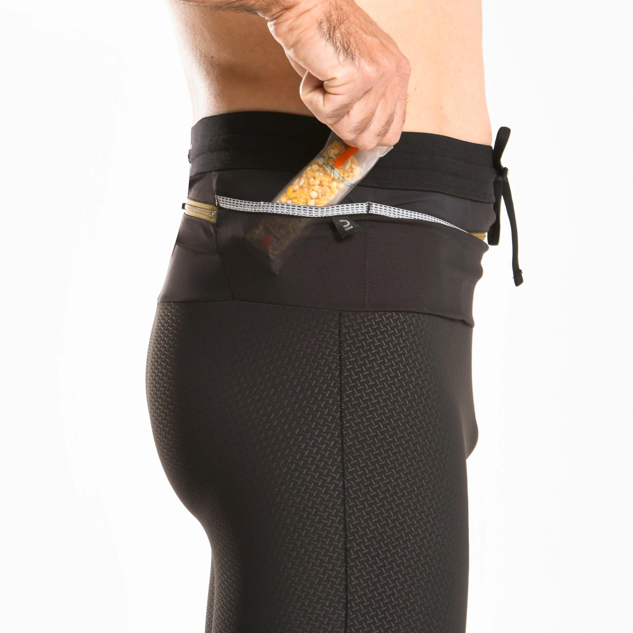 A BUILT-IN WAISTBAND WITH POCKETS for carrying muesli bars, gels, water bottle, keys: