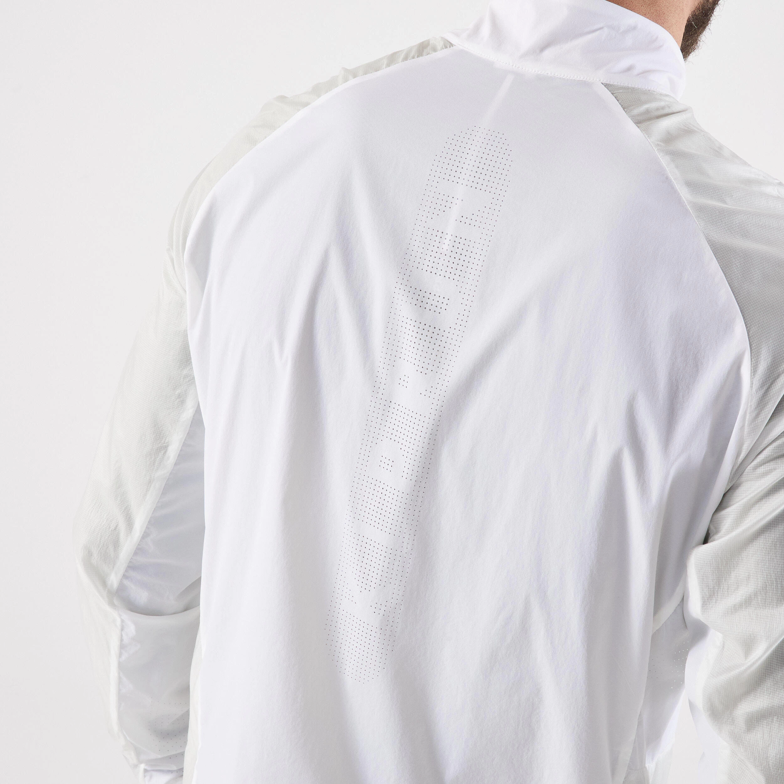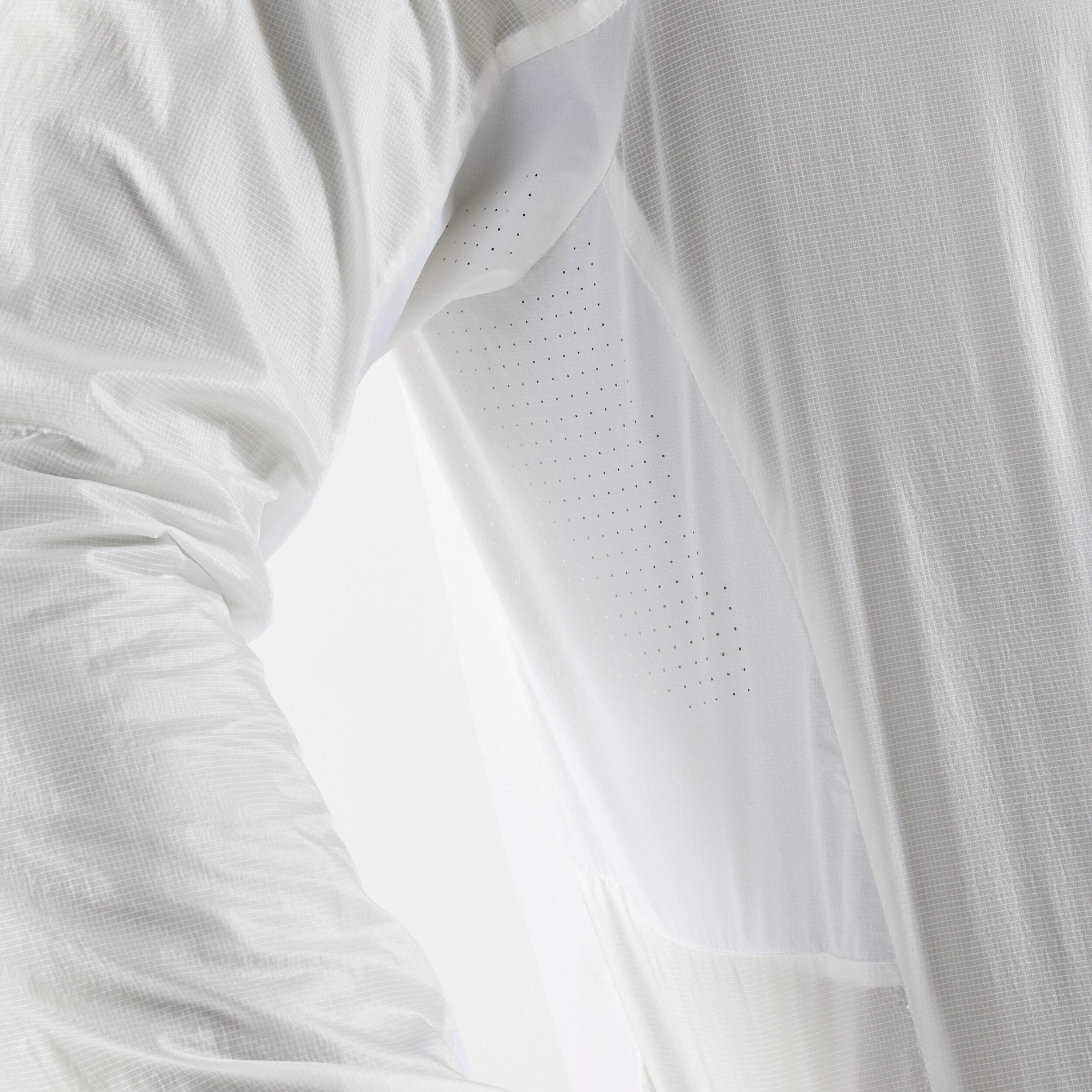 Our design teams developed this windproof jacket to protect you from the wind when running.This lightweight and compact jacket is ideal for running in windy weather. Easy to store away in its zip pocket.