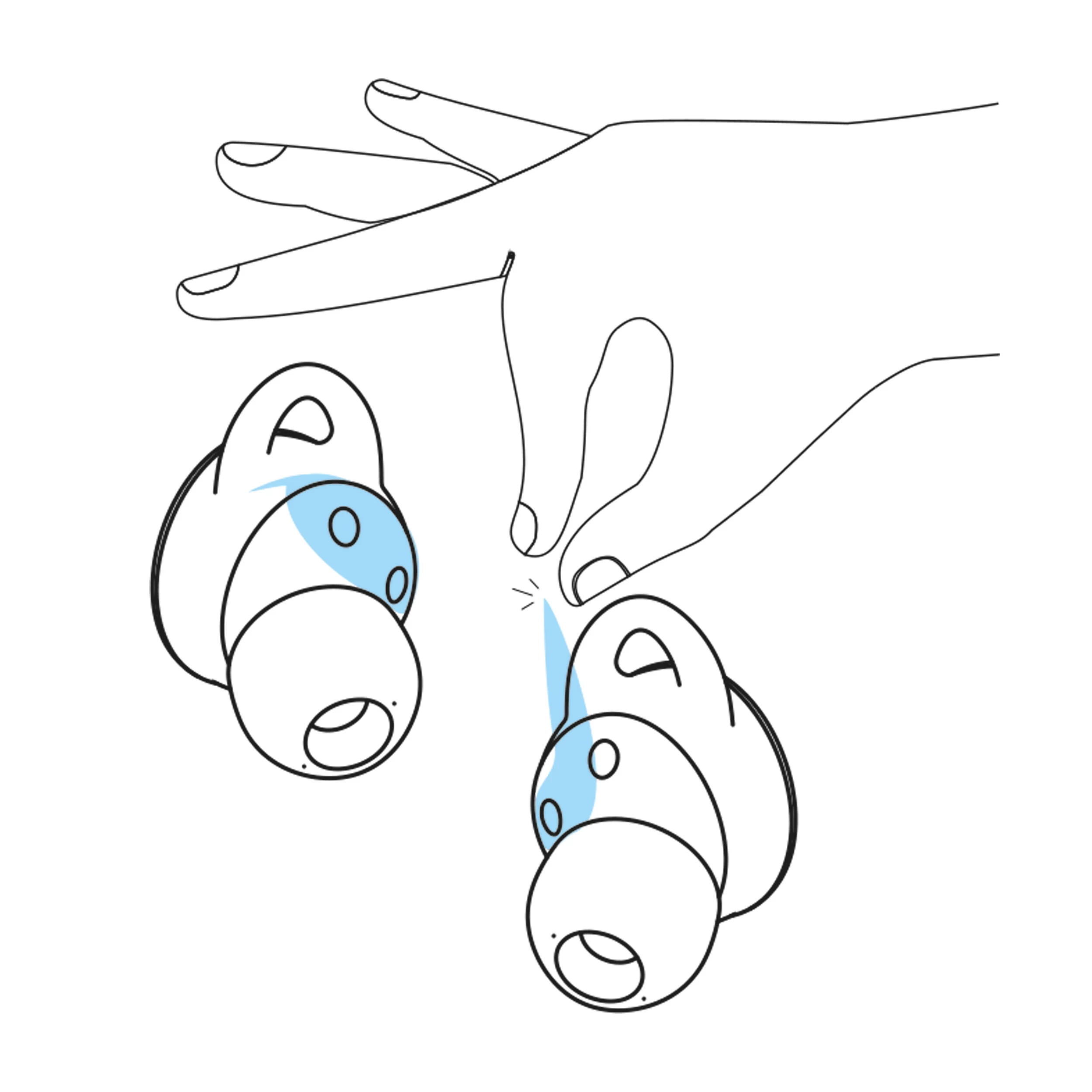 We’ve stuck little blue stickers on to prevent the earphones from switching on during transport. Please TAKE THEM OFF BEFORE USING THE EARPHONES FOR THE FIRST TIME.